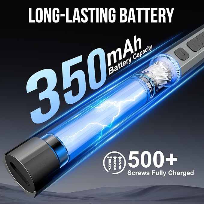 Powered by a 350mAh lithium-ion battery, tested for safety and endurance, this cordless screwdriver charges fully in just 60 minutes via Type-C USB. Work continuously with reliable power — perfect for on-the-go repairs or extended projects.